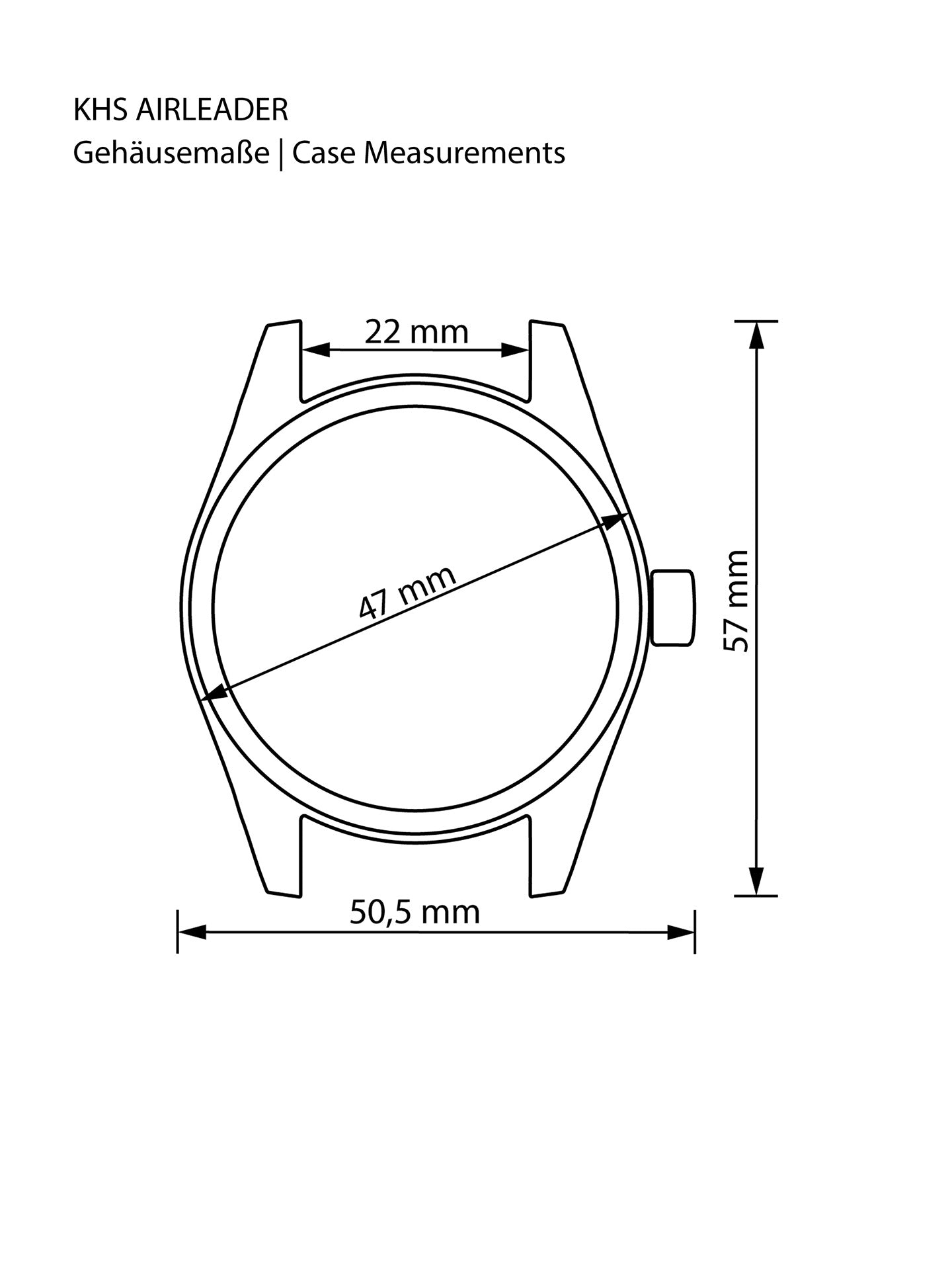 Ein extra großes Fliegerzifferblatt und eine besonders lang anhaltende C1-Beleuchtungsfarbe gewährleisten die perfekte Ablesbarkeit dieser KHS Fliegereinsatzuhr in jeder Einsatzsituation, bei Tag und auch bei Nacht. Erhältlich in den Gehäusevarianten Steel und Black Steel.