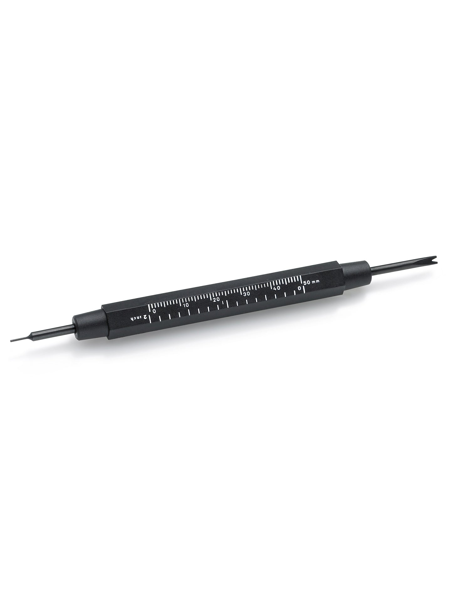 - Die aufgebrachte Skala ermöglicht ein Abmessen der Federstege / Bandanschläge in Inch und Millimeter
