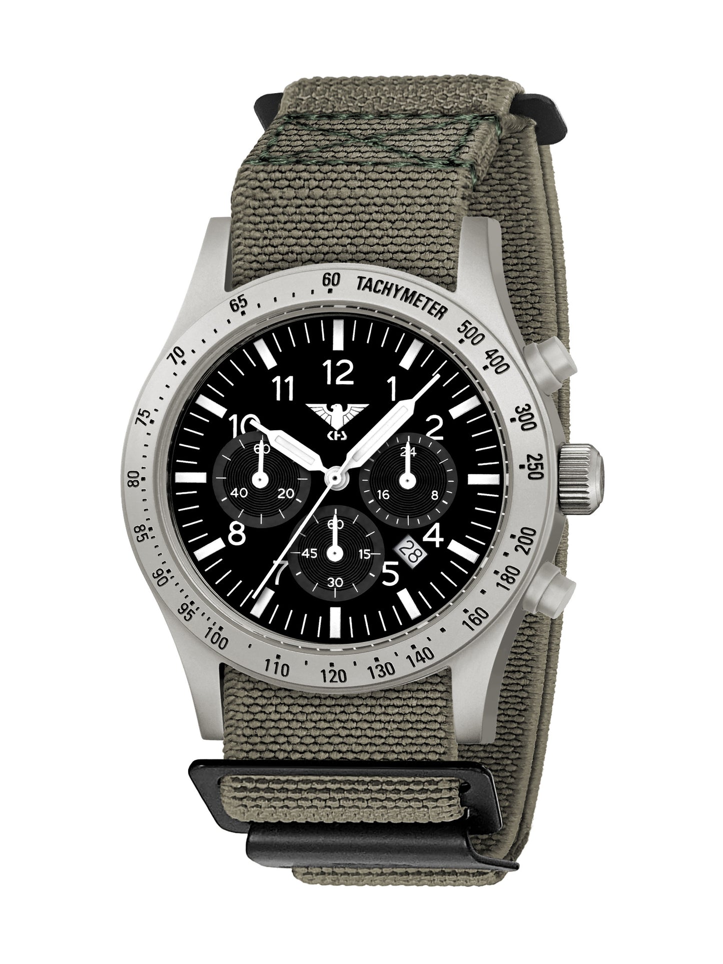 Die neue KHS PLATOON Solar Chronograph ist eine taktische Solaruhr, die an den bewährten militärischen Standard der U.S. Army, MIL-W-46374F, anknüpft und höchste Anforderungen in jedem Umfeld erfüllt. Inspiriert von der legendären "GI Basic Field Watch" für Soldaten, setzt KHS mit der PLATOON SOLAR auf robuste Materialien und eine langlebige Konstruktion. Diese einsatzbereite Uhr vereint minimalistisches Design mit moderner Technik, um ein zuverlässiger Begleiter im Alltag und bei extremen Bedingungen zu sein.