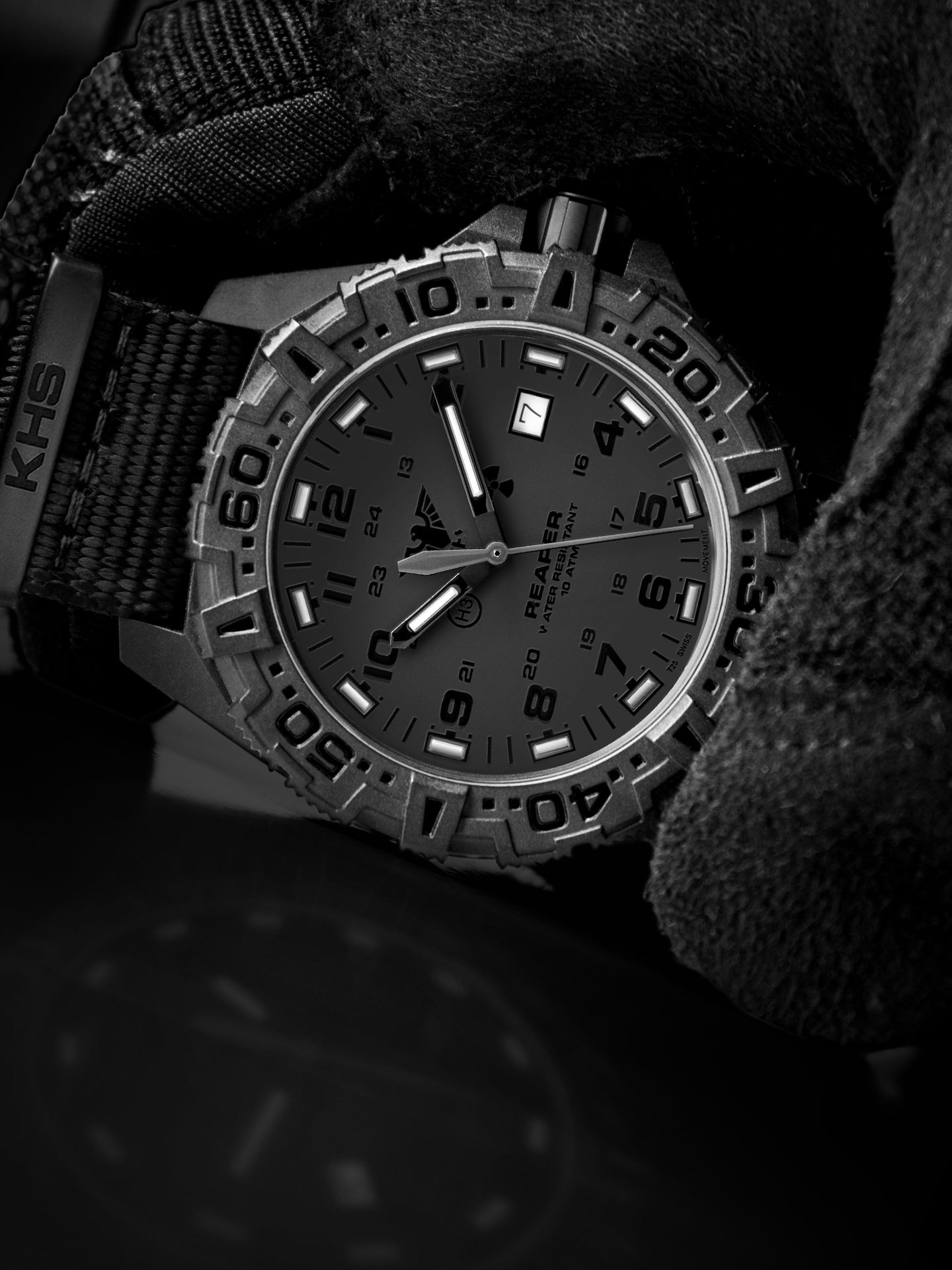 Vor kurzem habe ich mir eine KHS Reaper MKII gekauft und bin wirklich begeistert und mehr als zufrieden mit der Uhr. Sie ist sehr leicht, sehr leise und das Ziffernblatt ist durch die Trigalights gut erkennbar und wirkt zugleich durch das dunkle Design unauffällig.